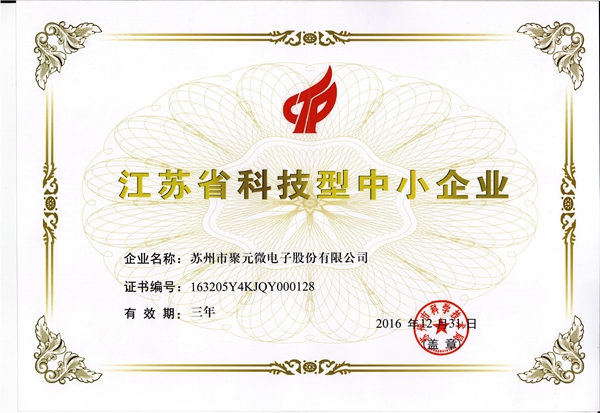 Jiangsu Science and technology small and medium-sized enterprise certificate